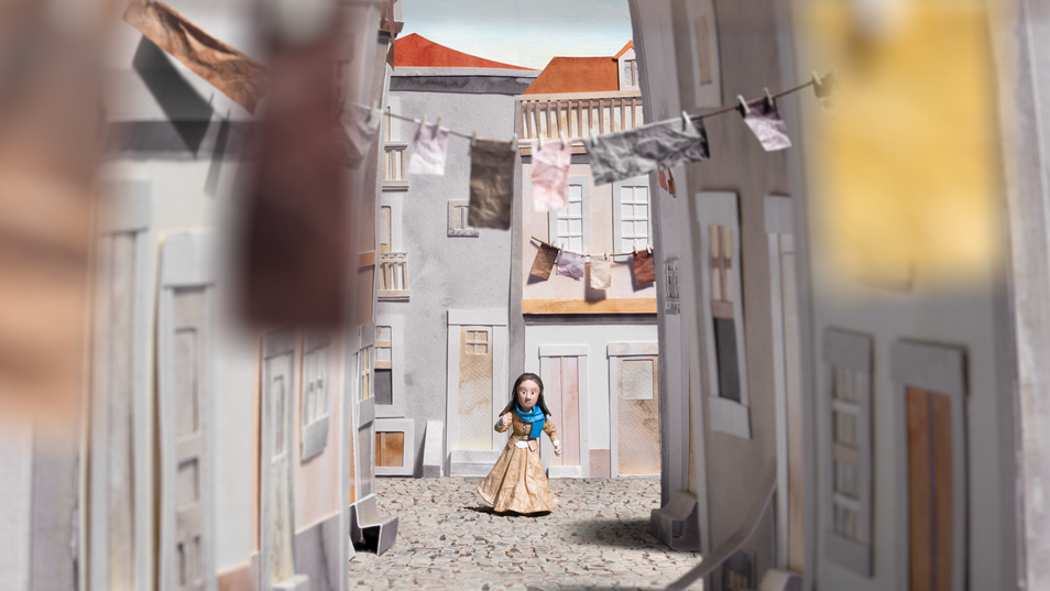 Anaisa, a 12 year old girl, wishes to become a tile painter like her father. Right before the big earthquake in Lisbon, it is revealed to her that her family is crypto-Jewish, she feels divided between the culture where she grew up and her cultural heritage. During the catastrophe, Anaisa get’s the Hebrew Bible and, to protect it from the greedy and intolerant religion around her, she must leave her country, for a place where she can continue her family tradition and make her dream come true.